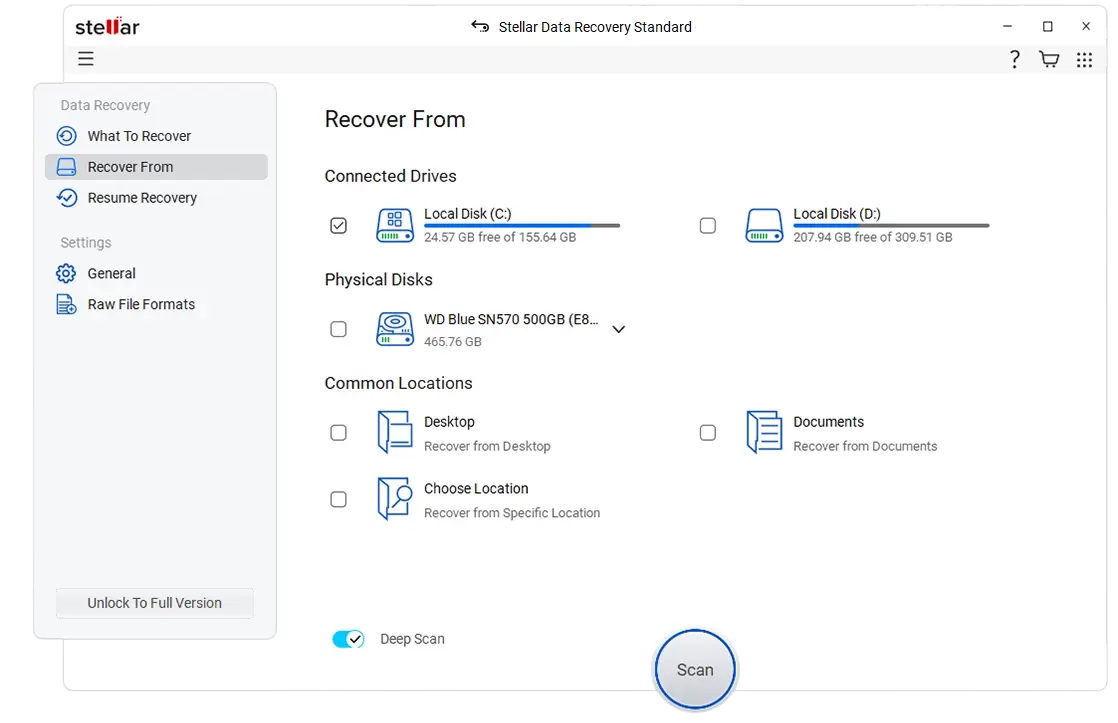 Regardless of emptying the Recycle Bin or using the Shift + Delete command, Stellar will get your drive scanned at a very deep level right down to the raw disk sectors during this critical window of time so that documents, photos, and videos, etc., can be recovered quickly and effectively.