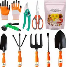 Basic Hand Tool Kits (5-7 pieces): - Hand trowel for digging, potting, soil mixing - Cultivator for breaking up soil and preparing beds - Weeding fork for removing weeds with roots intact - Hand pruner for cutting stems and branches - Garden fork for small-scale digging tasks - Included carrying bag for organization and portability - Optional ergonomic gloves for hand protection