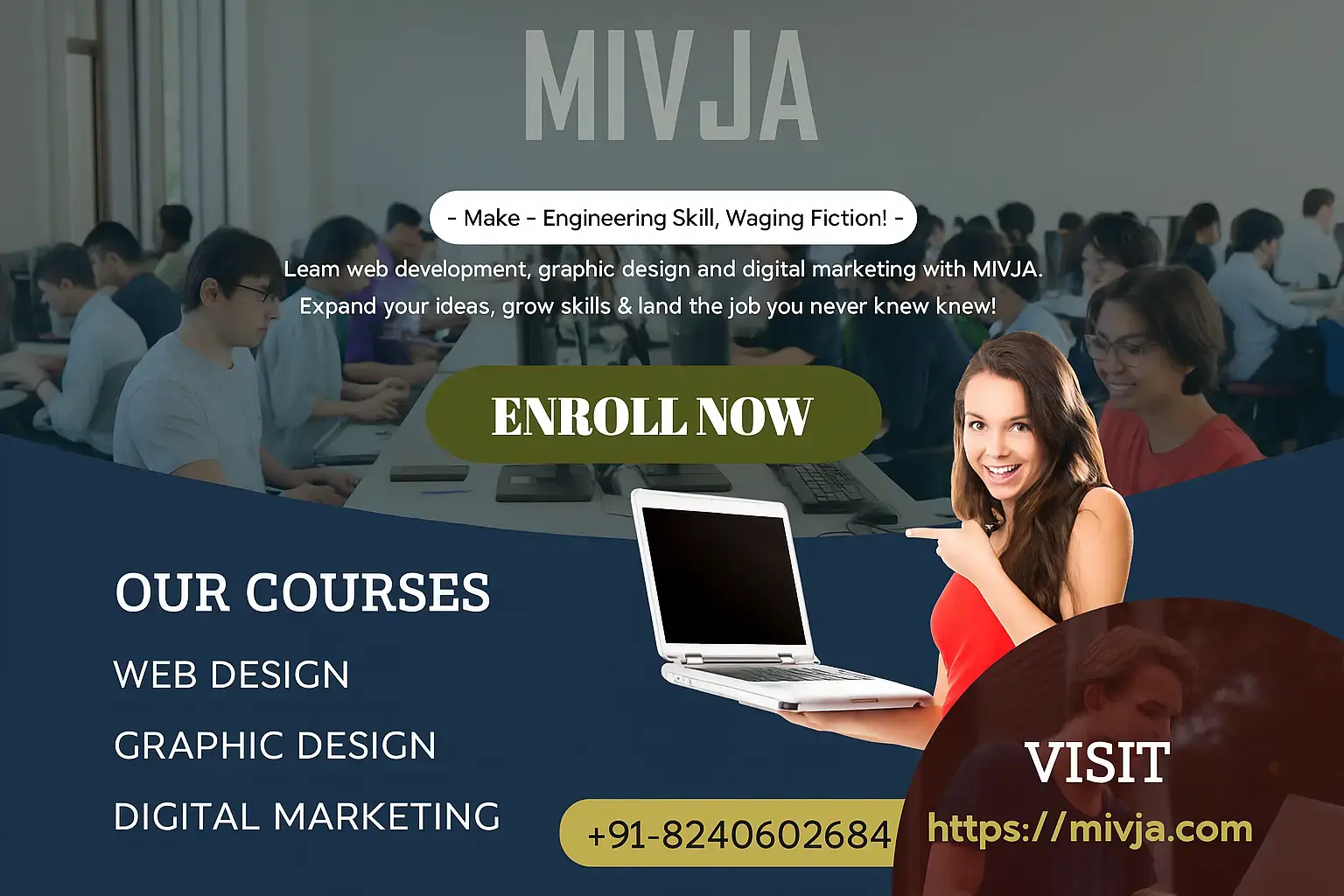Offers in-depth digital marketing programs, including 50+ module courses, AI tools exposure, live projects, and guaranteed placement support.