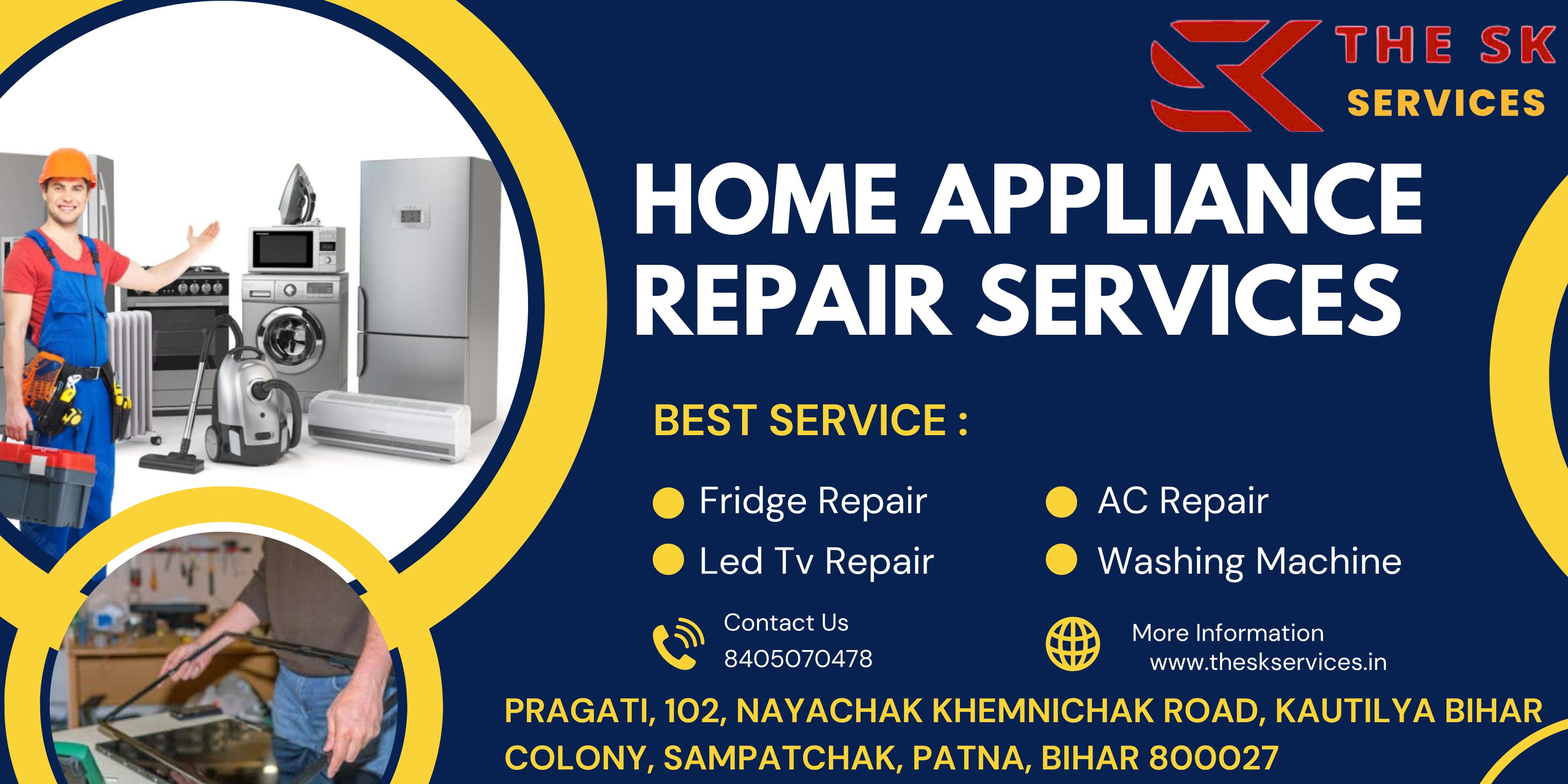 How can I contact The SK Services for electronics repair near me?You can contact The SK Services easily through their official website www.theskservices.in or via phone. They have multiple channels including email and phone contact to schedule quick and convenient service appointments near your location.