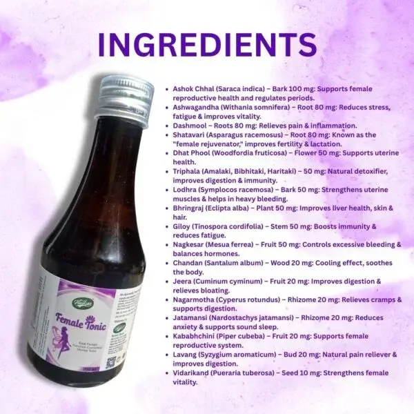 Ayurveda approaches women’s health through Stree Rasayana, a rejuvenative philosophy focused on nourishing reproductive tissues (Artava Dhatu), balancing Vata and Kapha doshas, and supporting emotional and hormonal stability over time. Rather than offering short-term symptom relief, this tradition emphasizes sustained vitality through herbal nourishment that enhances energy, digestion, immunity, and menstrual wellness. Nicolson Female Tonic reflects this holistic framework by combining classical Ayurvedic herbs known for supporting hormonal harmony, stress resilience, and reproductive strength—making it suitable for women managing fatigue, PMS concerns, irregular cycles, or lifestyle-related imbalances while maintaining long-term wellness.