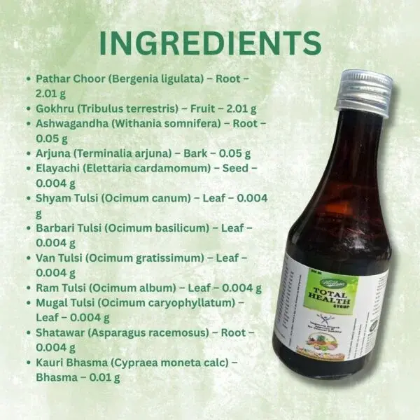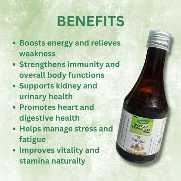 Ayurveda understands health as a balanced integration of body, mind, and metabolism, where Rasayana therapy helps strengthen tissues (Dhatus) and sustain vitality over time. Nicolson Total Health Syrup reflects this holistic philosophy by supporting multiple systems—immunity, digestion, cardiovascular wellness, and energy metabolism—rather than addressing isolated concerns. Its blend of traditional herbs and mineral preparations is designed to provide natural nourishment, promote Ojas (vital essence), and help individuals manage fatigue, irregular routines, and lifestyle stress through consistent daily use.